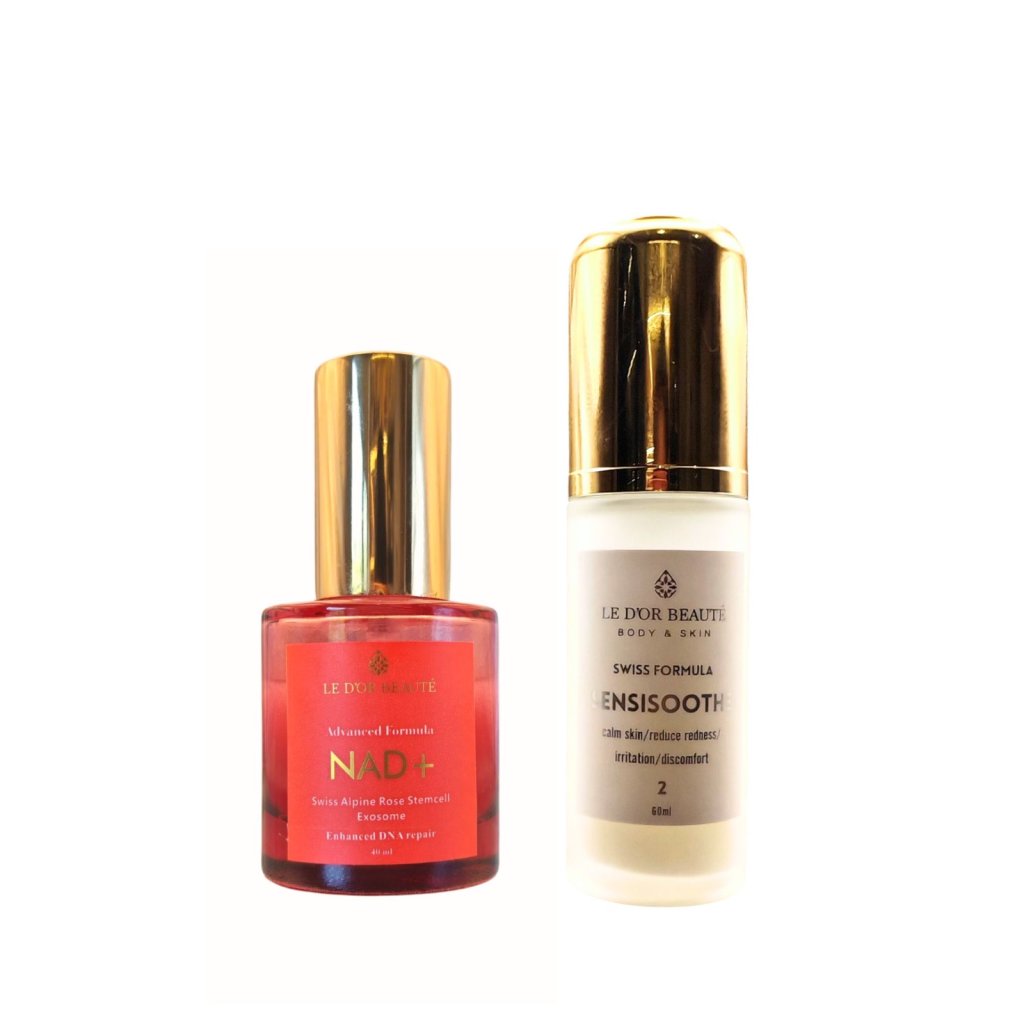 LE D'OR NAD+修復細胞DNA精華40ML -產品功效: NAD+是存在於活細胞中的重要輔酶。它在各種代謝和信號傳導途徑中發揮著至關重要的作用,尤其是在細胞能量產生和修復(包括DNA修復)。將維生素 A、B3和C與幹細胞一起添加也會增強 DNA 修復效果。 NAD+會隨著年齡的增長而下降。NAD+是一種輔酶,促進體內的生化反應。它是參與修復酵素的關鍵要素,有助於維持基因組的穩定性。它作為一種訊號分子,影響各種細胞正常活動過程和對壓力的反應。 NAD+ 的好處是多方面的: NAD+ 可增強免疫系統,增厚皮膚外層,防止細菌和病毒入侵 • 它還能促進人體新陳代謝;預防因UV 引起的皮膚問題護膚方面,減少皺紋、淡化色斑、增強皮膚彈性蛋白,促進膠原蛋白再生。 在護膚產品中使用 NAD+可以促進健康細胞再生,修復因紫外線損傷而受損的細胞,抗衰老,淡化黑斑,減少皺紋。我們的三重幹細胞精華液中添加了NAD+,以獲得最佳的護膚效果。效果快速顯著(7天或更短時間內可見效)。 它也適用於敏感肌膚、濕疹和 其他問題肌膚。