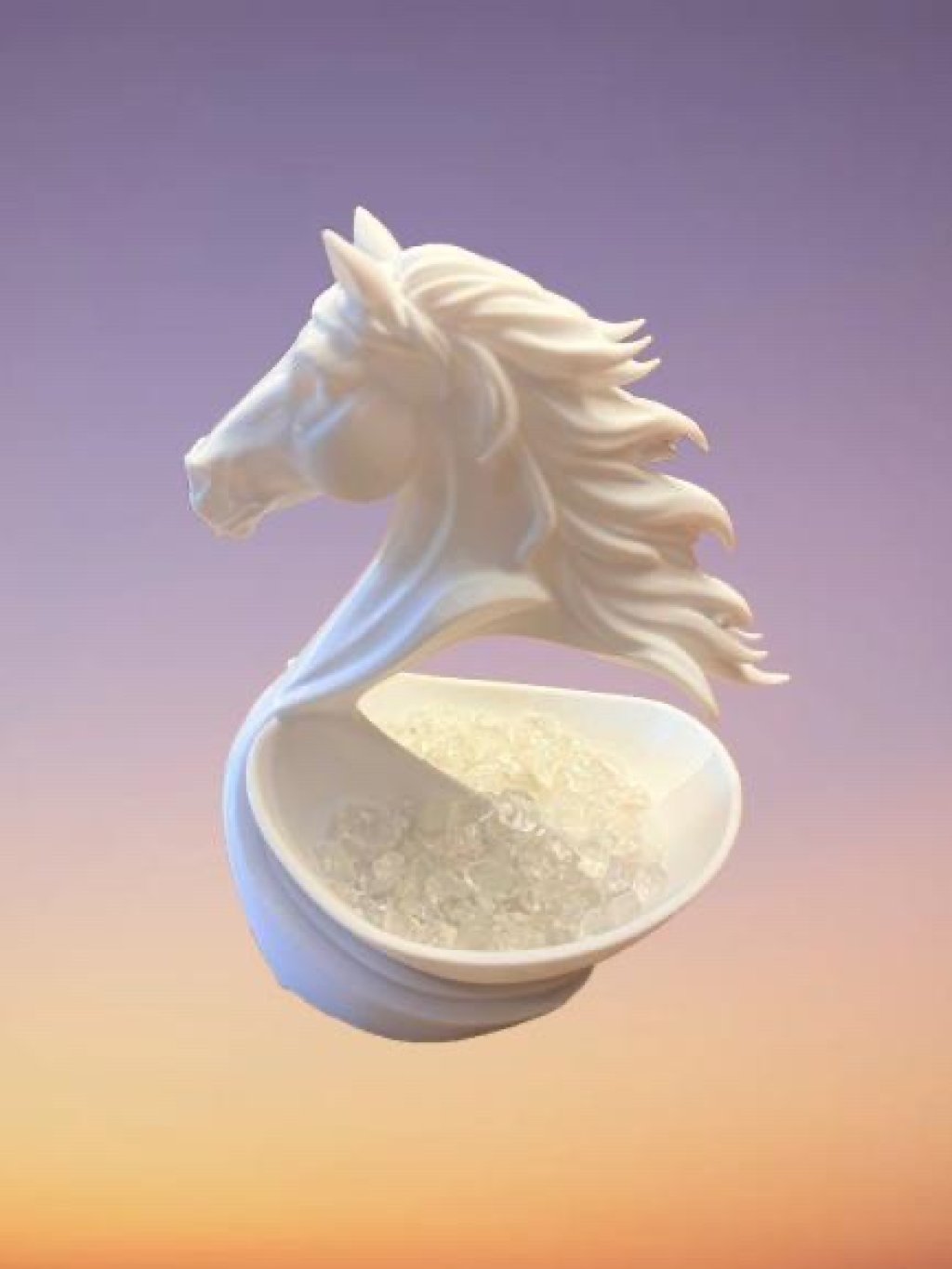 -白色在五行屬金,代表正氣與剛直。馬頭昂首寓意「一馬當先」。白色馬頭特別能吸引「官星」與「文昌星」的注意,助於建立良好的公眾形象與名望,讓您的才華被世界看見。